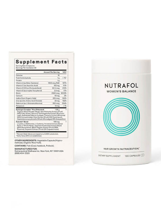 Nutrafol’s formulations use natural ingredients, including adaptogens and botanical extracts, to promote hair growth and scalp health. The brand offers targeted products for men, women, and specific concerns such as postpartum and menopause-related hair thinning. Buy a 3 month supply of any Nutrafol supplements and get 1 month FREE